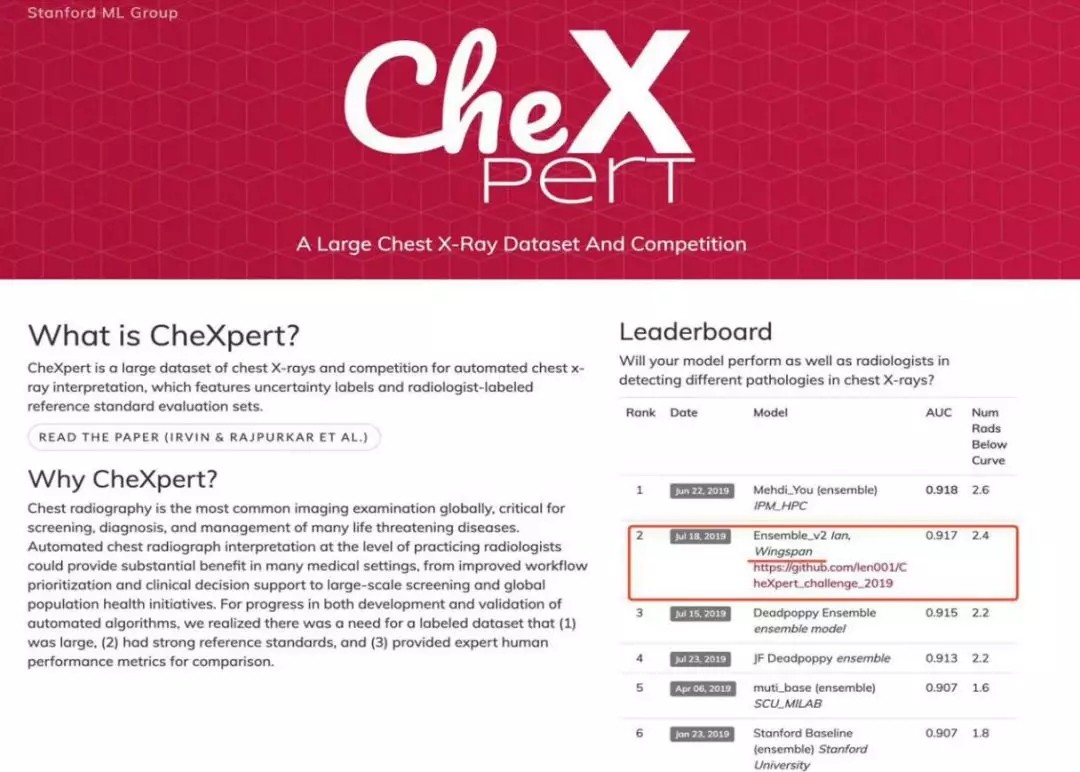 年初,斯坦福大學吳恩達團隊發(fā)布了CheXpert大型數(shù)據(jù)集,這個數(shù)據(jù)集內(nèi)含224,316張標注好的胸部X光片以及放射科醫(yī)師為每張胸片寫的病理報告,共涉及65,240名患者。數(shù)據(jù)集的時間跨度為2002年10月到2017年7月,都是患者在斯坦福醫(yī)院進行胸部X光檢查之后的留存